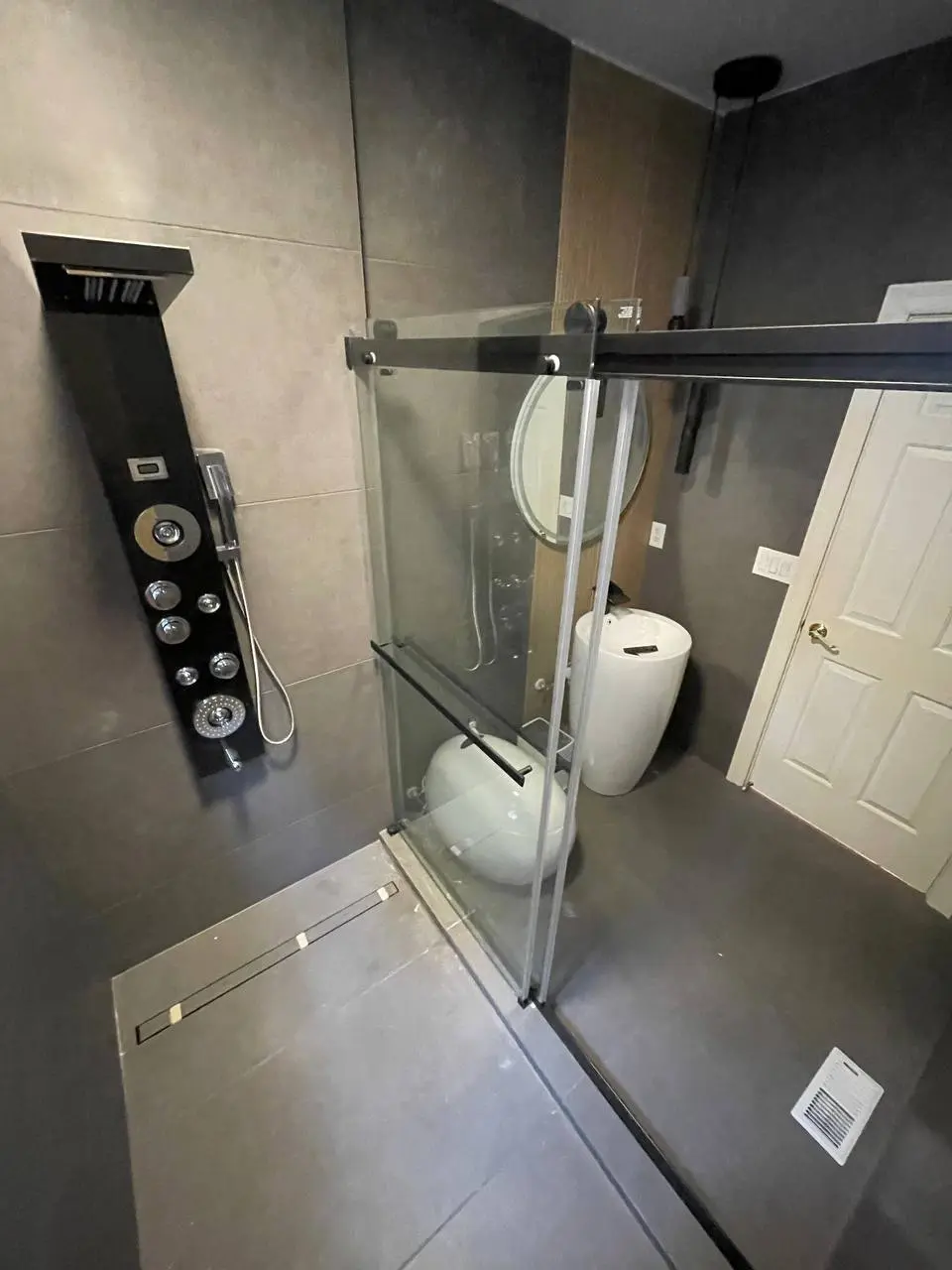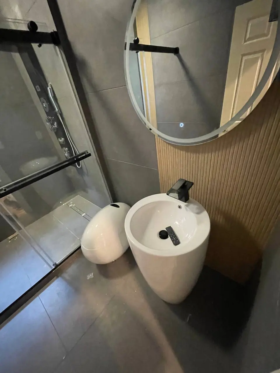 The carefully selected tiles added a modern touch, complementing the creative approach to space optimization. This project is a perfect example of how thoughtful design and attention to detail can transform even a small bathroom into a stylish and comfortable area.