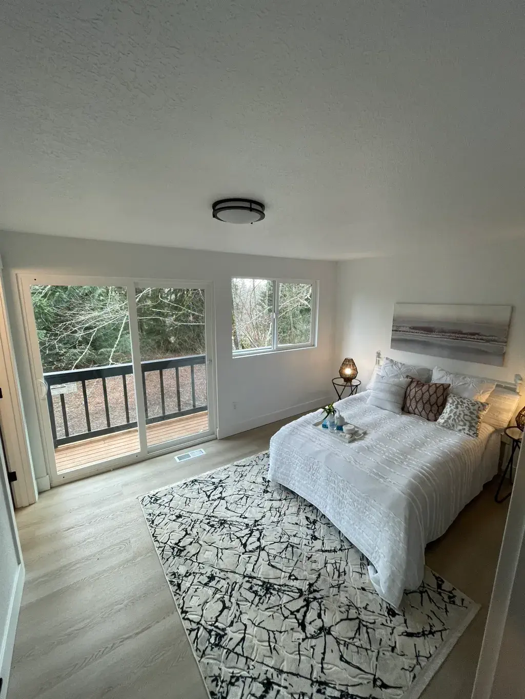 We restored the walls and roof, reestablishing the home’s structural integrity. New windows were installed to fill the space with light, and durable flooring was laid throughout. A significant highlight was the construction of a new deck on the second floor, providing an inviting outdoor space.